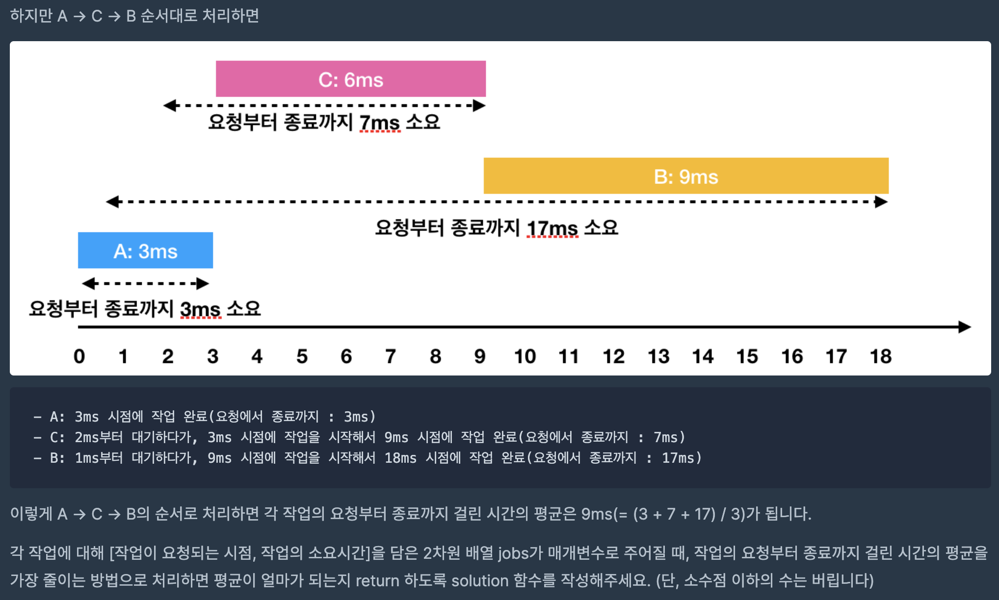 코딩테스트 연습 - 디스크 컨트롤러 | 프로그래머스